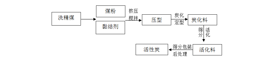 華輝牌JY系列煤制活性炭就是華輝公司針對近年來國內(nèi)飲用水深度凈化工藝的不斷發(fā)展和水質(zhì)特點所開發(fā)的專用凈水活性炭,其生產(chǎn)加工的工藝流程如下:
